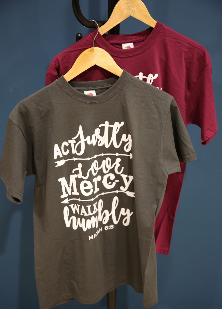 This is a striking T-shirt with the words from Micah 6v8. Fruit of the Loom. 100% cotton.